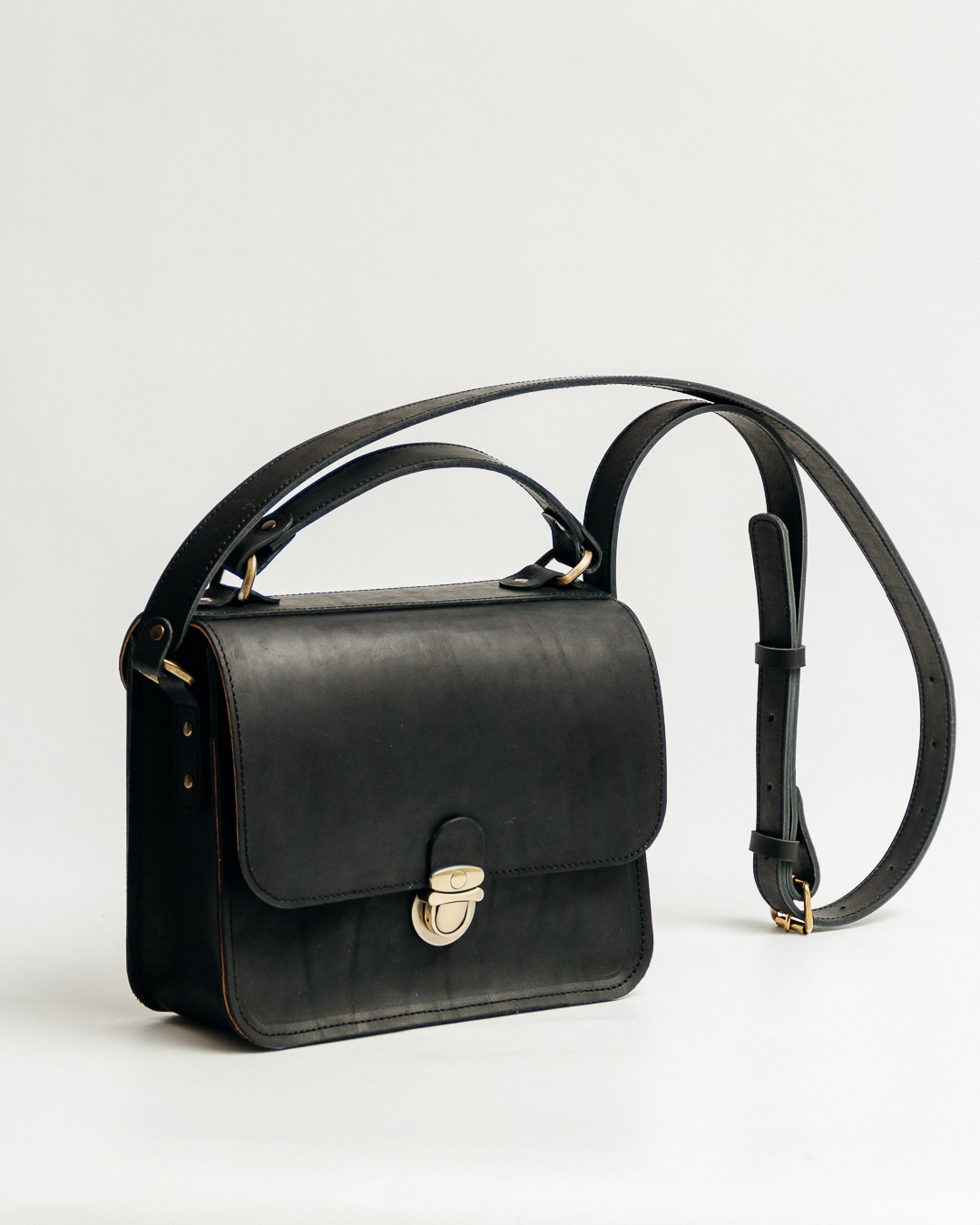 Сумка из натуральной кожи застегивается на портфельный замок.